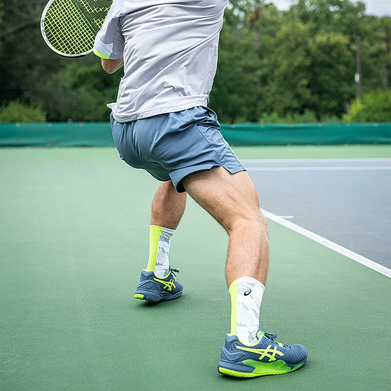 8805862Deze schoenen werden ontwikkeld voor expert tennissers die op eender welke ondergrond spelen en zich daarbij met hoge intensiteit over de court bewegen.De nieuwe Asics Gel Resolution 9 is nog altijd voorzien van de kenmerkende Gel™-schokdemping maar biedt daarbij dankzij de Dynawall- en Dynawrap-technologieën ook extra ondersteuning en stabiliteit.
