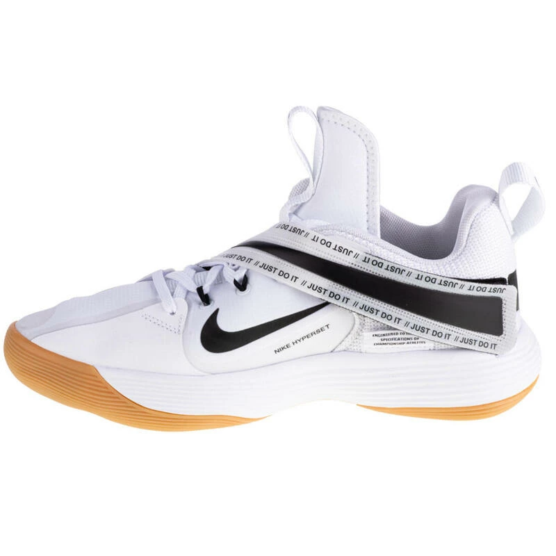 Nike React HyperSet schoenen zijn een topmodel sportschoenen ontworpen voor volleybal. Ze bieden een uitstekende grip op binnenoppervlakken, waardoor het mogelijk is om gestaag uit te springen en te landen, op volle snelheid aan te vallen en snel te stoppen. De binnenzool is gemaakt van textiel dat voor gebruiksgemak en comfort zorgt. Het bovenwerk is een combinatie van stof en kunststof.