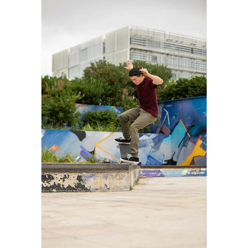 8555354Onze productontwikkelaars ontwierpen deze gevulkaniseerde skateschoenen voor skaters op zoek naar soepele en stevige schoenen met een erg goede grip.De gevulkaniseerde samenstelling biedt je een uitstekende grip op je board en veel flexibiliteit (boardfeel).