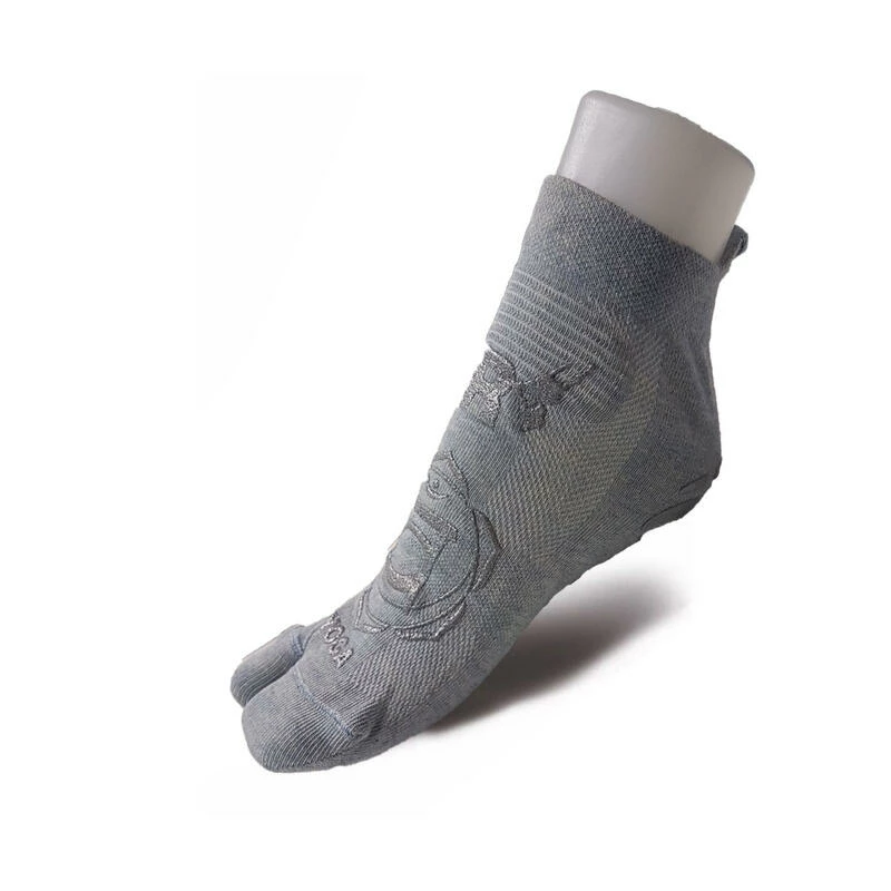 • Met zijn biologische en hypoallergene katoen omhult de sok de voet zonder druk, met volledig respect voor de holistische discipline. De externe banden voeren onmiddellijk de zweet en waterdamp af, zodat de voet altijd droog blijft. Flexibele uitsparingen om de beweging van de enkel te vergemakkelijken.