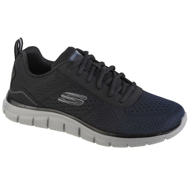 Schoenen Track-Ripkent – 232399-NVBK Blauw: Voeg flexibel comfort toe aan je trainingen met Skechers Track – Ripkent. Deze veterschoen heeft een zachte bovenkant van mesh en een gewatteerde Skechers