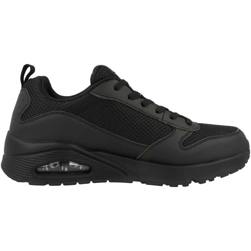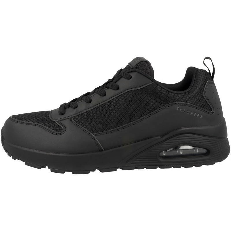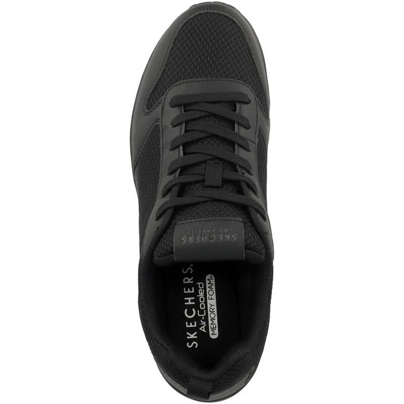 Schoenen Uno – Fastime – 237016-BBK Zwart: De comfortabele Skechers Uno – Fastime schoen heeft een verfijnde sneakerstijl en de perfecte kleur. Soepele, synthetische en mesh bovenkant in een klassieke sneaker in joggingstijl met vetersluiting, stiksels en deklaagaccenten. Binnenzool van Air Cooled Memory Foam, zichtbaar air gedempte hakpaneel.