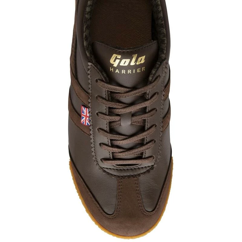 Harrier Tweed is een betrouwbare investeringsschoen uit de Made in England collectie van Gola. Met een bovenwerk van pluche donkerbruin leer, effen suède en nubuck en een tweed voering is de Harrier Tweed een ingetogen high-end schoenkeuze voor heren. Dit gemakkelijk te dragen kledingstuk is voorzien van Gola Made in England branding en een Union Jack tong, allemaal aangevuld met een gum zool. – Made in England – Premium leer- Harrier silhouet- Herensneakers- Tweed voering