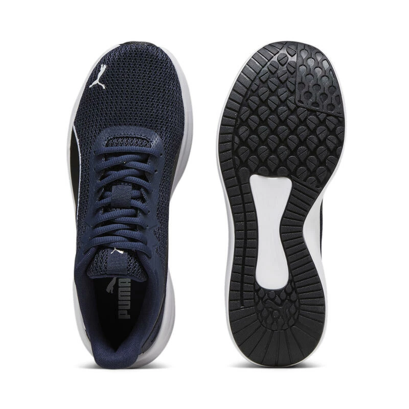Multifunctioneel, totaal comfort. Stap in de Transport Modern schoen en je bent klaar voor een rondje joggen in de ochtend, een dag op kantoor of een casual uitstapje in het weekend. Het gemodelleerde ontwerp wordt benadrukt door de vorm van de veterstrook en de PUMA Formstrip en de tong is afgewerkt met een geborduurde rand. Een rubberen zool over de volledige lengte biedt totale tractie. De finishing touch: het klassieke PUMA Cat-logo op de neus.